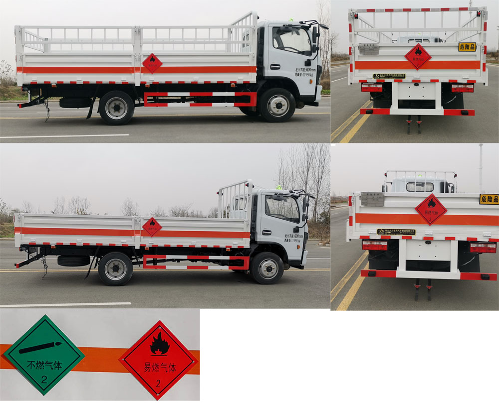 整車備注: | 該車為危險品運輸車.隨底盤選裝前面罩,前保險杠,前組合燈具,前霧燈,后視鏡.該車用于運輸具有獨立容器(瓶)包裝的易燃氣體或運輸具有獨立容器(瓶)包裝的非易燃無毒氣體,類項號2.1,2.2.選掛2.1類易燃氣體警示牌或2.2類非易燃無毒氣體警示牌.廂體選裝無柵欄樣式.后部安裝液壓尾板,液壓尾板收起水平長度:300mm,尾板質(zhì)量為450kg,側(cè)、后防護材料為Q235,連接方式:焊接連接,后防護截面高100mm,截面寬50mm,下邊緣離地高460mm;選裝后部不帶尾板時,后防護裝置材料:Q235,連接方式為焊接,后防護截面高100mm,截面寬50mm,下邊緣離地高460mm.僅采用排氣管前置,子午胎,限速裝置,輔助制動裝置和前盤制動器的底盤;限速80km/h.安裝具有衛(wèi)星定位功能的行駛記錄儀;ABS廠家及型號:襄陽東風隆誠機械有限責任公司/ABS/ASR-24V-4S/4M.發(fā)動機型號及油耗值(L/100km)為: YCS04190-68(20.3),D25TCIF1(20.3),D30TCIF1(20.2),D40TCIF1(20.3),NV30-C6D(20.3),CY4SK261(20.1),CY4SK361(20.4),YCY30165-60(21.1).轉(zhuǎn)向軸已安裝防爆胎裝置.選裝ETC車載裝置. | ||