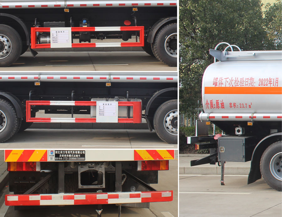 整車(chē)備注: | 該車(chē)適用于危險(xiǎn)品運(yùn)輸.該車(chē)FL型車(chē)輛.類(lèi)項(xiàng)號(hào):3.罐體有效容積: 23.7立方米. 罐體外形尺寸(mm):(長(zhǎng)×寬×高):7200×2450×1610,8200×2480×1680.側(cè)、后防護(hù)裝置材料:Q235B,側(cè)防護(hù)連接方式:螺栓連接,后防護(hù)連接方式:焊接連接,后部防護(hù)裝置的主要尺寸參數(shù)(寬×高):50×120(mm),離地高度:490(mm).整車(chē)長(zhǎng)/前懸/軸距/后懸(mm)對(duì)應(yīng)關(guān)系為:10830/1475(1515)/1995+3800+1350/2210(2170),11230/1475(1515)/ 1995+4200+1350/2210(2170)..EBS型號(hào)及生產(chǎn)廠家:EBS5/東科克諾爾商用車(chē)制動(dòng)系統(tǒng)(十堰)有限公司.僅采用排氣管前置,子午胎,限速裝置,輔助制動(dòng)裝置和前盤(pán)制動(dòng)器的底盤(pán);限速80km/h.安裝具有衛(wèi)星定位功能的行駛記錄儀;發(fā)動(dòng)機(jī)與油耗值(L/100km)的對(duì)應(yīng)關(guān)系分別為: DDi75E350-60(37.5),WP8.350E61 (38).該車(chē)后軸采用空氣懸架,轉(zhuǎn)向輪裝備輪胎爆胎應(yīng)急防護(hù)裝置.選裝ETC車(chē)載裝置. | ||