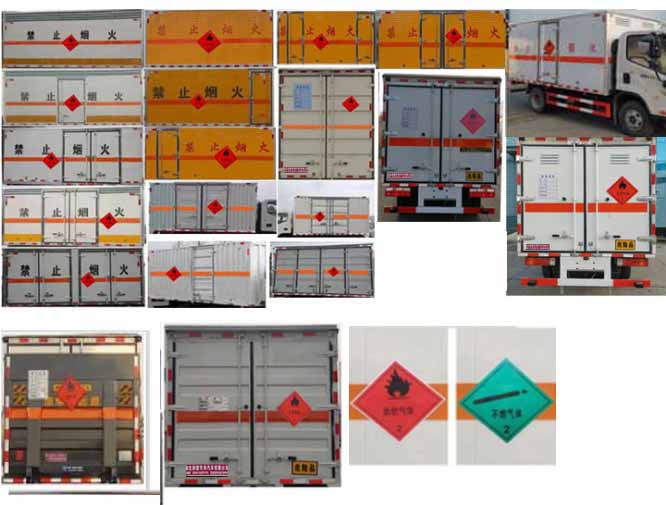 整車備注: | 1、該車用于危險(xiǎn)品運(yùn)輸,廂體頂部封閉,不可開啟。該車運(yùn)輸具有獨(dú)立容器(瓶)包裝的易燃?xì)怏w。運(yùn)輸介質(zhì)類項(xiàng)號(hào):2.1,2.2;運(yùn)輸易燃?xì)怏w時(shí)掛2.1類警示牌,運(yùn)輸非易燃無毒氣體時(shí)掛2.2類警示牌。 2、選裝側(cè)開門,側(cè)門可為單開門或雙開門或不開門,選裝側(cè)門型式及位置,選裝不帶液壓尾板,不帶液壓尾板時(shí)后防護(hù)焊接連接,截面尺寸為100×50mm,離地高度為460mm。隨底盤選裝前面罩,前保險(xiǎn)杠,前組合燈具及前霧燈。選裝導(dǎo)流罩,選裝排半駕駛室,選裝瓦楞結(jié)構(gòu)廂體,裝液壓尾板時(shí)收起狀態(tài)的水平長度為280mm,尾板質(zhì)量為350kg.3、側(cè)/后防護(hù)材料為Q235,側(cè)防護(hù)螺栓連接,后防護(hù)為柱形,焊接連接,直徑為120mm,下邊緣離地高450mm。4、僅采用裝配前輪盤式制動(dòng)器,前置排氣管,子午線輪胎, 轉(zhuǎn)向輪安裝輪胎爆胎應(yīng)急防護(hù),限速裝置的底盤;限速80km/h;該車安裝具有衛(wèi)星定位功能的行駛記錄儀,可選裝ETC車載裝置;ABS系統(tǒng)控制器型號(hào)/生產(chǎn)企業(yè):ABS-E/威伯科汽車控制系統(tǒng)(中國)有限公司,ABS-VIE/廣州瑞立科密汽車電子股份有限公司。發(fā)動(dòng)機(jī)/油耗值(L/100km):F2.8NS6B131/11.5,Q28-130E60/11.5. | ||