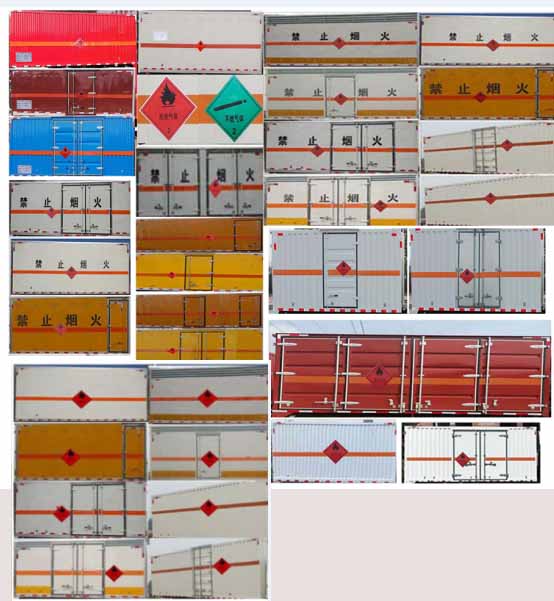 整車備注: | 1、該車用于危險品運輸,廂體頂部封閉,不可開啟。該車運輸具有獨立容器(瓶)包裝的易燃氣體。運輸介質類項號:2.1,2.2;運輸易燃氣體時掛2.1類警示牌,運輸非易燃無毒氣體時掛2.2類警示牌。 2、選裝側開門,側門可為單開門或雙開門或不開門,選裝側門型式及位置,選裝廂體后部樣式。隨底盤選裝前面罩,前保險杠,前組合燈具及前霧燈。僅選用3800mm軸距底盤,選裝導流罩,選裝排半駕駛室,選裝瓦楞結構廂體,裝液壓尾板時收起狀態(tài)的水平長度為280mm,尾板質量為350kg.3、側/后防護材料為Q235,側防護螺栓連接,后防護為柱形,焊接連接,直徑為120mm,下邊緣離地高450mm。4、僅采用裝配前輪盤式制動器,前置排氣管,子午線輪胎, 轉向輪安裝輪胎爆胎應急防護,限速裝置的底盤;限速80km/h;該車安裝具有衛(wèi)星定位功能的行駛記錄儀,可選裝ETC車載裝置;ABS廠家及型號:襄陽東風隆誠機械有限責任公司/ABS/ASR-24V-4S/4M.發(fā)動機/油耗值L/100km對應關系分別:CY4SK261/21.3,CY4SK361/21.3,D25TCIF1/21.3,D30TCIF1/21.3,D40TCIF1/21.3,NV30-C6D/21.3,YCY30165-60/21.3,YCS04190-68/21.3。選裝不帶液壓尾板,不帶尾板時后防護焊接連接,截面尺寸100×50mm,下邊緣離地高度450mm。 | ||