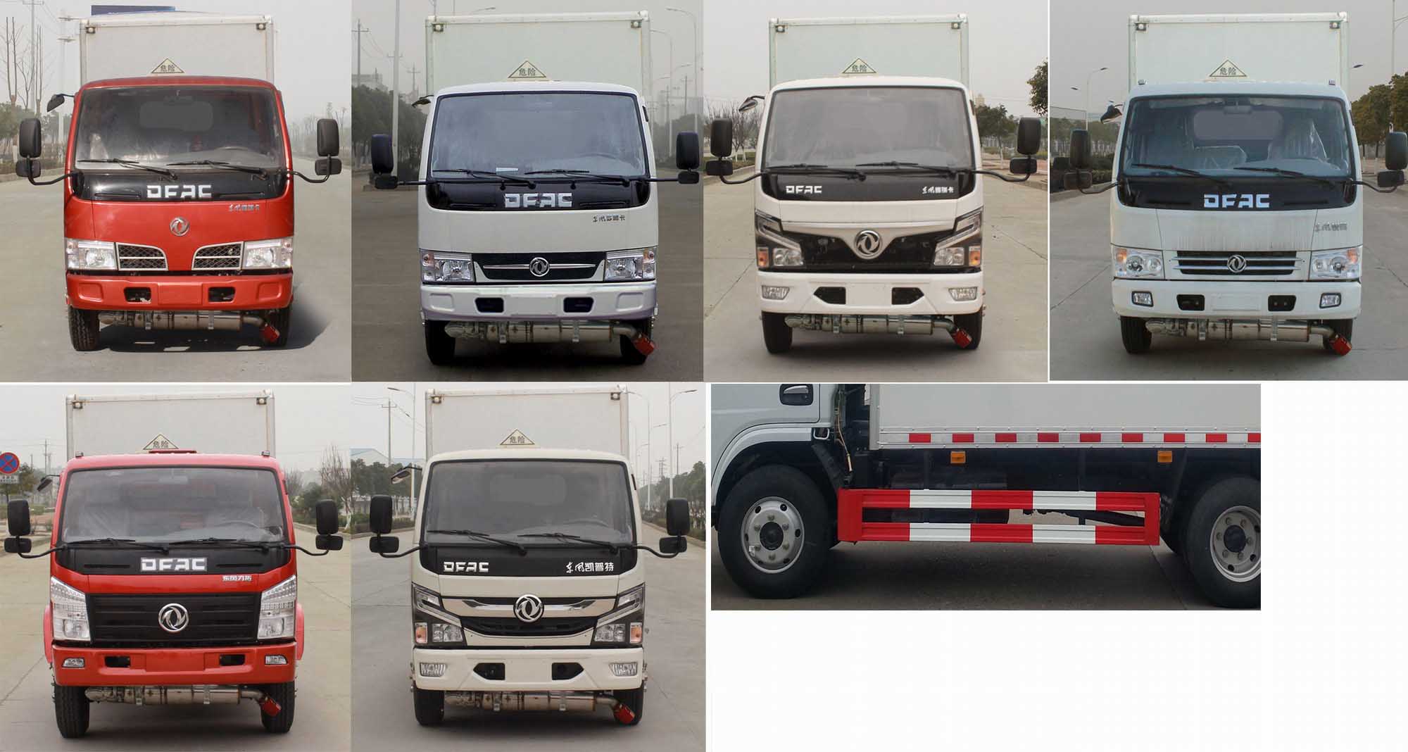 整車備注: | 1、該車用于危險品運輸,廂體頂部封閉,不可開啟.運輸介質類項號2.1,2.2。危險品標志牌選掛2.1類易燃氣體警示牌或掛2.2類非易燃無毒氣體警示牌。該底盤僅選用3308mm軸距。2、側/后防護材料為Q235,側防護螺栓連接,后防護焊接連接,截面尺寸100×50mm,下邊緣離地高450mm。3、選裝前面罩,前保險杠,前組合燈具,選裝左右油箱位置??蛇x裝側開門,側門可為單開門或雙開門或不開門,選裝側門型式及位置,選裝瓦楞板結構,選裝后部樣式。僅選用排氣管前置、限速裝置(限速80km/h)、前輪盤式制動及子午線輪胎的底盤;安裝帶有衛(wèi)星定位功能的行駛記錄儀;ABS廠家及型號:襄陽東風隆誠機械有限責任公司/ABS/ASR-24V-4S/4M。發(fā)動機/油耗值(L/100km):CY4BK461/16.2,CY4BK161/16.2,YCY24140-60/16.2,D20TCIF1/16.2,D25TCIF1/16.2,CA4DB1-11E6/16.2,CA4DB1-13E6/16.2。選裝前面罩,前保險杠,前組合燈具,前霧燈,后視鏡。可選裝ETC車載裝置。 | ||