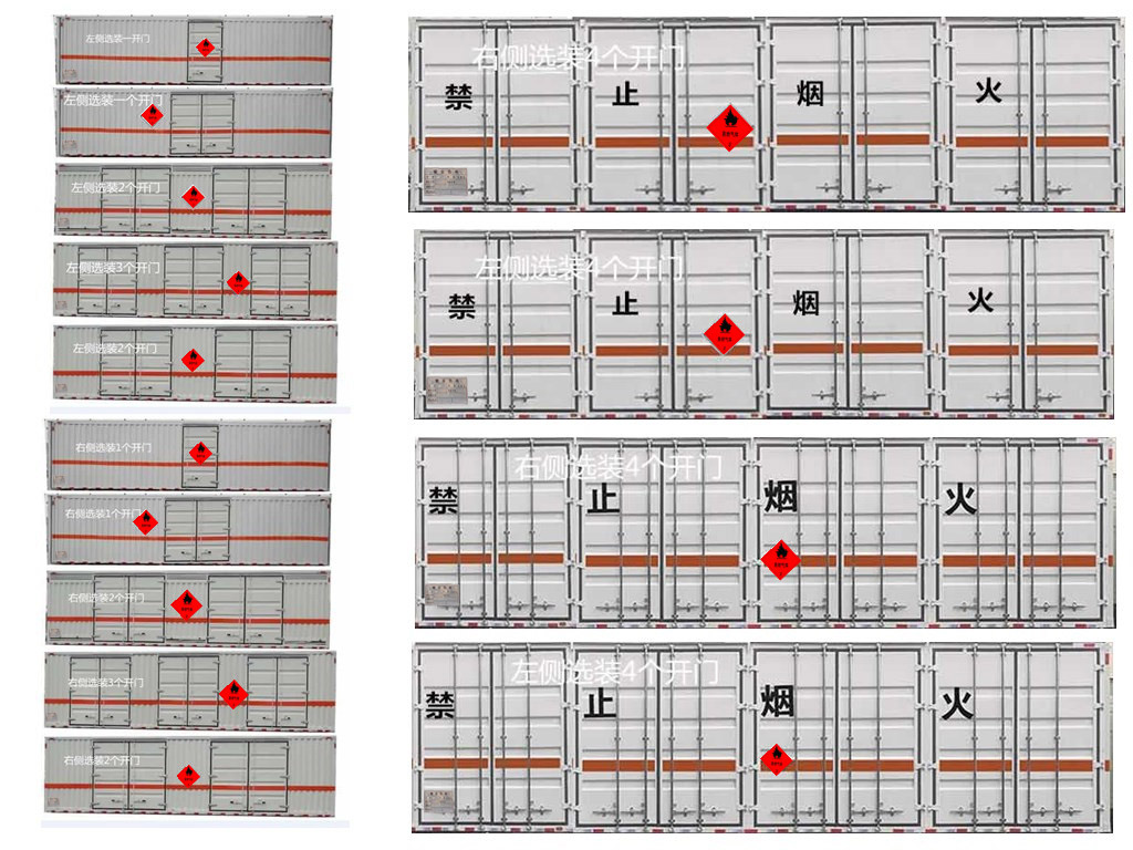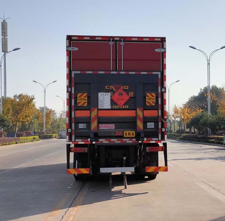 整車備注: | ABS型號:CM4XL;ABS生產(chǎn)企業(yè):長春瑞立科密汽車電子有限公司;安裝有限速裝置;限速裝置限速(km/h):79;安裝有具有衛(wèi)星定位功能的行駛記錄儀;選裝描述:僅選用1900+4500+1350mm軸距底盤,選裝側(cè)開門,側(cè)門可為單開門或雙開門或三開門或四開門,選裝側(cè)門型式及位置,選裝雙門桿;發(fā)動機/油耗值(L/100km)對應(yīng)關(guān)系為:CA6DK1-32E6/38.45,CA6DL6-36E6/38.39;所用材料材質(zhì)、連接方式以及后部防護(hù)裝置的主要尺寸參數(shù)(斷面尺寸和離地高度):側(cè)/后防護(hù)材料為Q235,側(cè)防護(hù)焊接連接,后防護(hù)采用焊接,截面尺寸120×50mm,下邊緣離地高460mm;尾板、上下坡道(或類似裝置)收起狀態(tài)的水平長度(mm):裝液壓尾板時收起狀態(tài)的水平長度為290mm,尾板質(zhì)量為550kg;車廂頂部封閉且不可開啟;專用功能及裝置:該車用于危險品運輸;運輸獨立容器(瓶)包裝的貨物;危險貨物類項號:3;其他說明:僅選用排氣管前置,前盤制動,子午線輪胎底盤;后軸采用空氣懸架;轉(zhuǎn)向輪安裝輪胎爆胎應(yīng)急防護(hù)裝置;可選裝ETC車載裝置; | ||