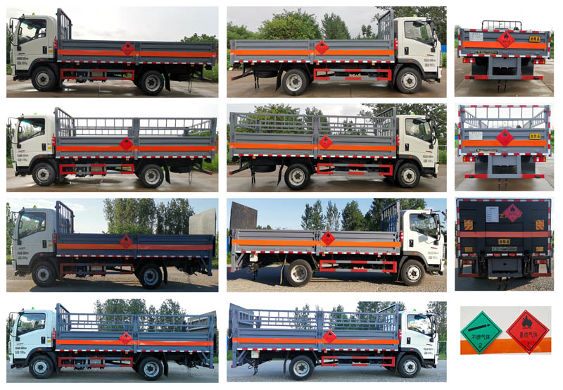 整車備注: | 該車為危險(xiǎn)品運(yùn)輸車.隨底盤選裝駕駛室.用于運(yùn)輸具有獨(dú)立容器(瓶)包裝的氣瓶,類項(xiàng)號:2.1,2.2.選掛2.1類易燃?xì)怏w警示牌或2.2類非易燃無毒氣體警示牌.后部安裝液壓尾板,液壓尾板收起水平長度:300mm,尾板質(zhì)量為450kg.側(cè)、后防護(hù)材料為Q235,連接方式:焊接連接,后防護(hù)截面高100mm,截面寬50mm,下邊緣離地高480mm.選裝后部不帶尾板時(shí),后防護(hù)裝置材料:Q235,連接方式為焊接,后防護(hù)截面高100mm,截面寬50mm,下邊緣離地高480mm.選裝無柵欄樣式.僅采用排氣管前置,子午胎,限速裝置,輔助制動(dòng)裝置和前盤制動(dòng)器的底盤;限速80km/h.安裝具有衛(wèi)星定位功能的行駛記錄儀.ABS系統(tǒng)型號為XH-KQ4S4M-E01,生產(chǎn)企業(yè)為廣州市西合汽車電子裝備有限公司;型號為CM4XL-4S/4M,生產(chǎn)企業(yè)為廣州瑞立科密汽車電子股份有限公司,型號為VIE ABS-Ⅱ,生產(chǎn)企業(yè)為浙江萬安科技股份有限公司.發(fā)動(dòng)機(jī)WP3NQ160E61,WP4.1NQ190E61對應(yīng)的油耗值為(L/100km):19.32,19.55.轉(zhuǎn)向軸已安裝防爆胎裝置.選裝ETC車載裝置. | ||