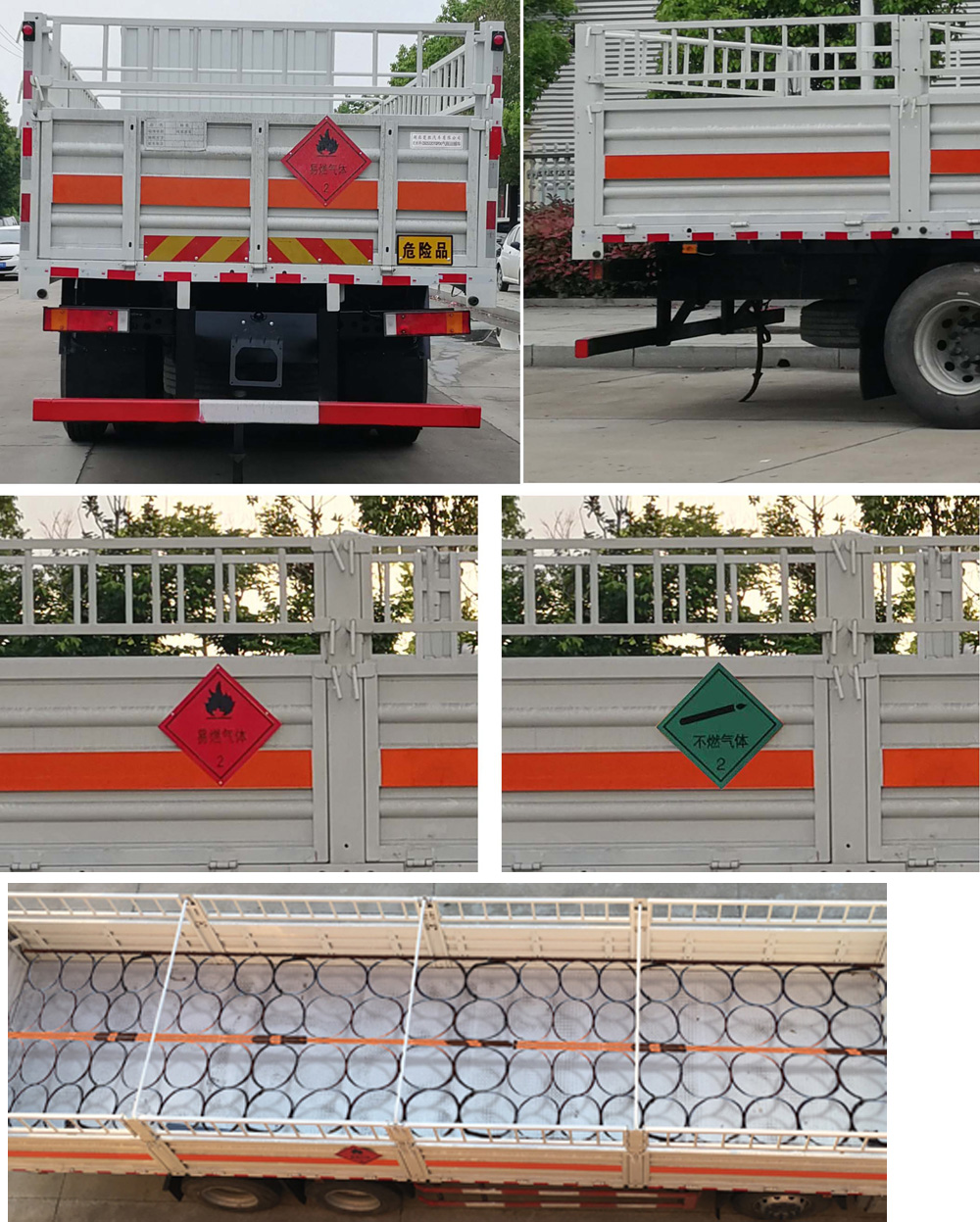 1、該車為危險品運(yùn)輸車.該車用于運(yùn)輸具有獨立容器(瓶)包裝的易燃?xì)怏w:液化石油氣,壓縮甲烷或甲烷含量高的壓縮天然氣,乙炔,乙烷,丁烷,丁烯,丙烯,二甲醚,壓縮氫,類項號2.1;用于運(yùn)輸具有獨立容器(瓶)包裝的非易燃無毒氣體:二氧化碳,壓縮氧(氮,空氣,氦,氬,氖),類項號:2.2。液壓升降尾板收起狀態(tài)水平長度為290mm,尾板質(zhì)量為550kg。2、側(cè),后防護(hù)材料均為Q235,螺栓連接;后防護(hù)截面為圓形,直徑為120mm,下邊緣離地高500mm。選裝后部無液壓升降尾板,選裝后部無尾板時,后防護(hù)螺栓連接,截面尺寸120×60mm,下邊緣離地高500mm。3、隨底盤選裝平頂駕駛室;選裝駕駛室前面罩;高頂駕駛室頂部氣喇叭為選裝件;駕駛室前角擾流板為選裝件。僅選用排氣管前置、限速裝置(限速80km/h)、前輪盤式制動及子午線輪胎的底盤;安裝帶衛(wèi)星定位功能的行駛記錄儀。ABS型號/生產(chǎn)廠家:ABS 8/東科克諾爾商用車制動系統(tǒng)(十堰)有限公司。采用的發(fā)動機(jī)DDi75E350-60對應(yīng)油耗值為38.1L/100km。后軸采用空氣懸架,轉(zhuǎn)向輪裝備輪胎爆胎應(yīng)急防護(hù)裝置。 |