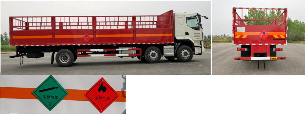 整車備注: | 該車為危險(xiǎn)品運(yùn)輸車.隨底盤選裝駕駛室.運(yùn)輸獨(dú)立容器(瓶)包裝的易燃?xì)怏w氣瓶:液化石油氣,壓縮天然氣,壓縮氫氣,乙炔,丁烷,丙烷,丁烯,丙烯,甲乙醚,打火機(jī)或打火機(jī)加油器,類項(xiàng)號(hào)2.1;運(yùn)輸獨(dú)立容器(瓶)包裝的非易燃無毒氣體:壓縮空氣,壓縮氧,二氧化碳,壓縮氮,壓縮氦,壓縮氬,壓縮氖.類項(xiàng)號(hào)2.2.選掛2.1類易燃?xì)怏w警示牌或2.2類非易燃無毒氣體警示牌.后部安裝液壓尾板,液壓尾板收起水平長(zhǎng)度300mm,尾板重量為550kg,側(cè)、后防護(hù)材料:Q235,連接方式均為焊接連接,后防護(hù)截面高120mm,截面寬50mm,下邊緣離地高490mm;選裝后部不帶尾板樣式時(shí)后防護(hù)裝置材料:Q235,連接方式為焊接,后防護(hù)截面高120mm,截面寬50mm,下邊緣離地高490mm.僅采用排氣管前置,子午胎,限速裝置,輔助制動(dòng)裝置和前盤制動(dòng)器的底盤;限速80km/h.安裝具有衛(wèi)星定位功能的行駛記錄儀;ABS型號(hào)/企業(yè):ABS-E 4S/4M/威伯科汽車控制系統(tǒng)(中國)有限公司,CM4XL-4S/4M/廣州瑞立科密汽車電子股份有限公司.發(fā)動(dòng)機(jī)型號(hào)及油耗值(L/100km)對(duì)應(yīng)關(guān)系為: YCS06270-60/33.48.后軸僅采用空氣懸架.轉(zhuǎn)向軸已安裝防爆胎裝置. | ||